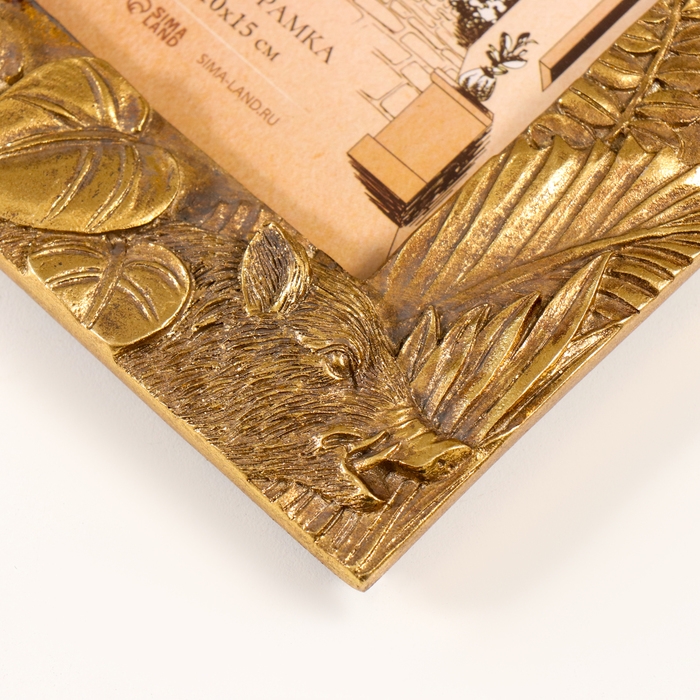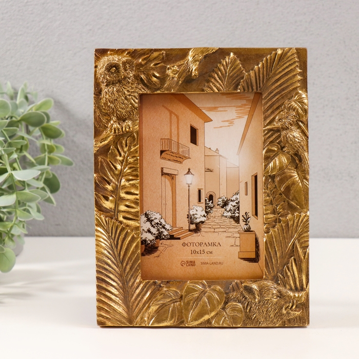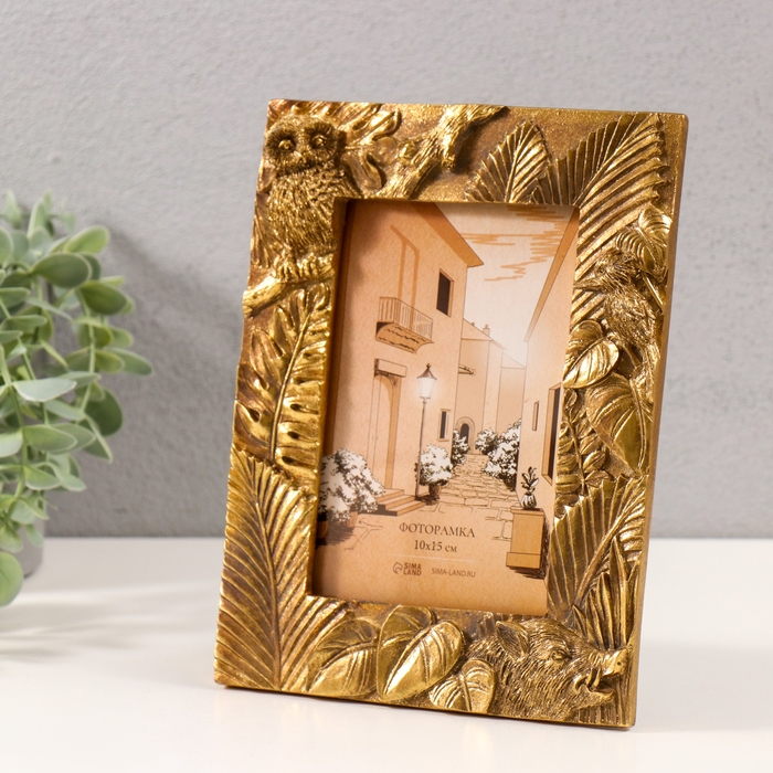 Фоторамка полистоун 10х15 см "Филин и кабан в экзотическом лесу" золото 16х1,6х21 см