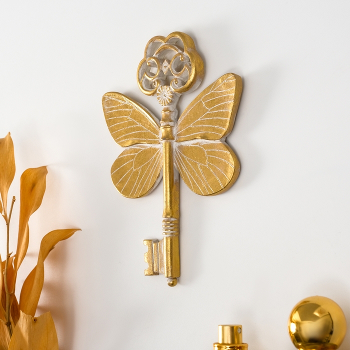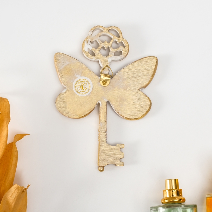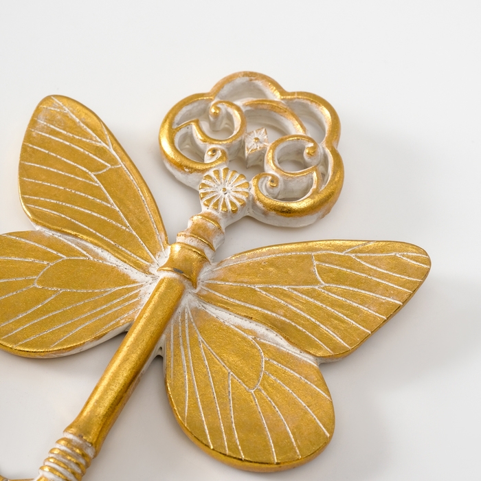 Панно интерьерное полистоун "Ключ с бабочкой" золото с белой патиной 10,5х0,7х15 см