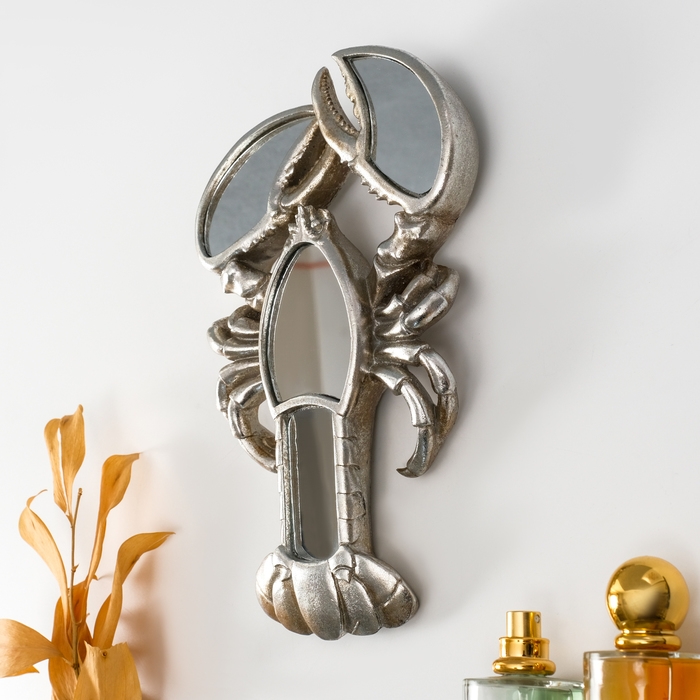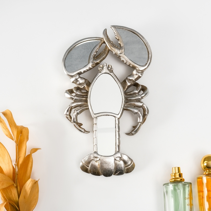 Панно интерьерное полистоун "Зеркальный рак" серебро 14х3х25 см