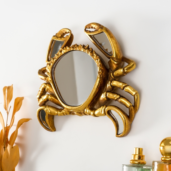 Панно интерьерное полистоун "Зеркальный краб" золото 23х4х18 см