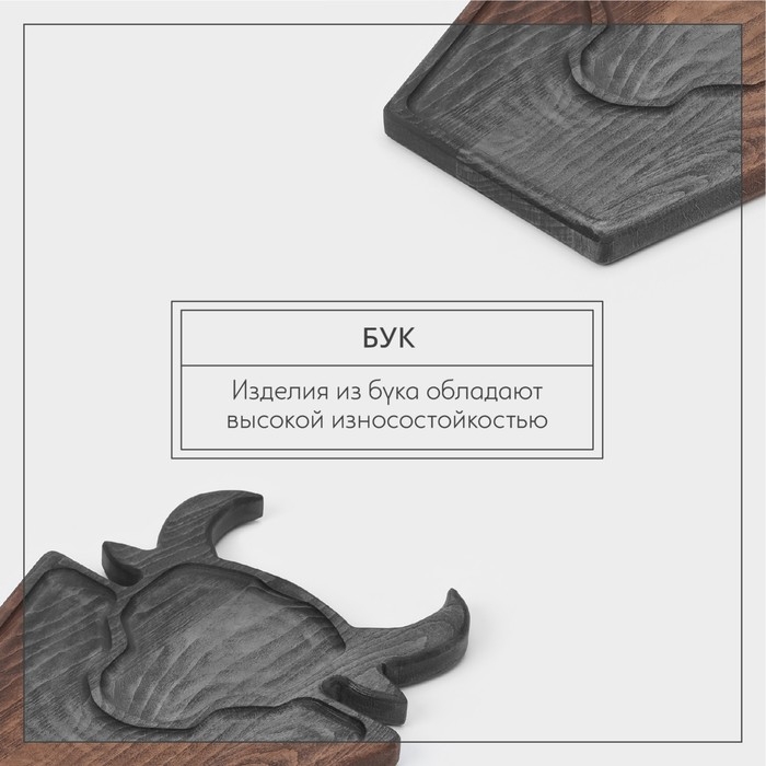 Доска для подачи блюд Wild Kitchen «Бык», 32,5×27,5×2,5 см, тёмный бук