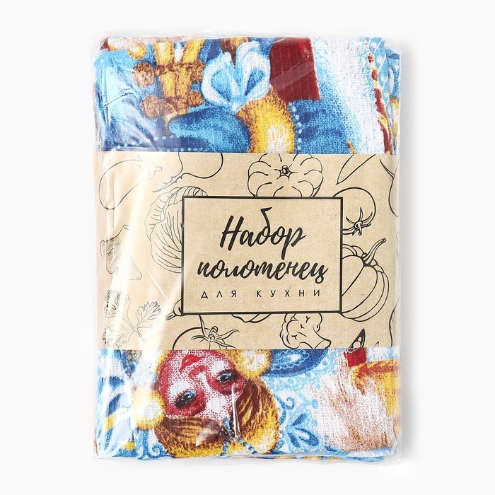 Набор полотенец "Доляна" С новым годом 35х60см-3шт.,100% хл, вафельное полотно 162г/м2