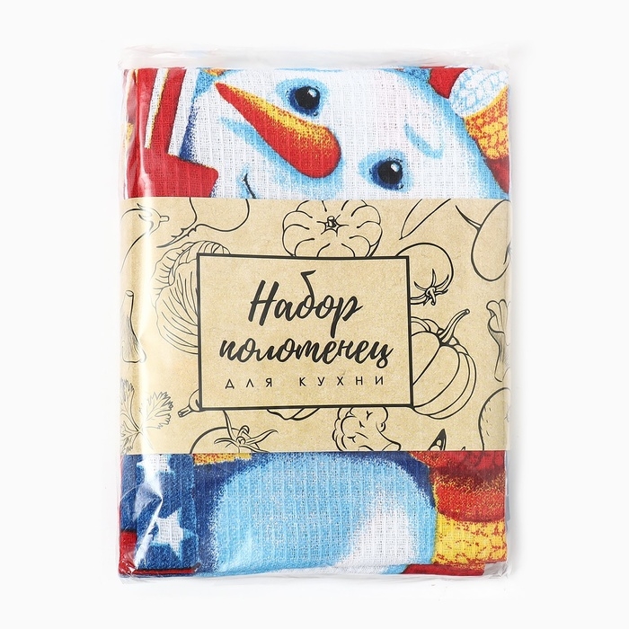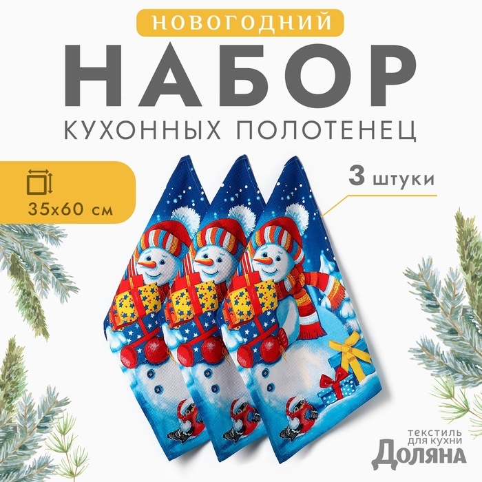 Набор полотенец "Доляна" Снеговик 35х60см-3шт., 100% хл, вафельное полотно 162г/м2