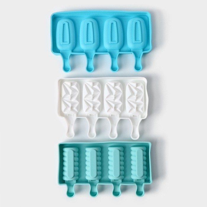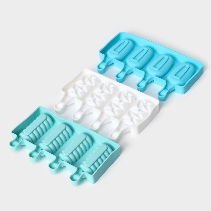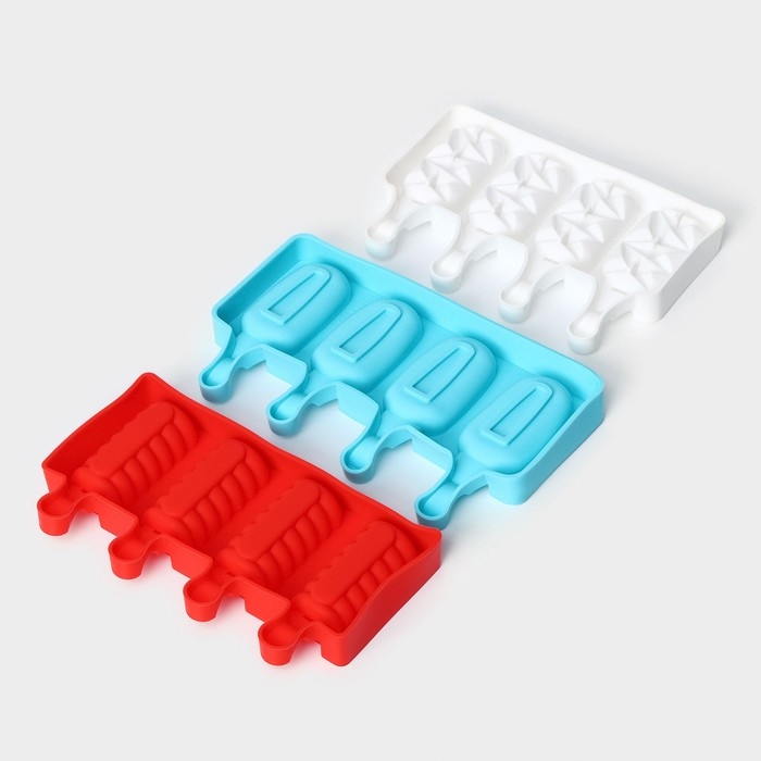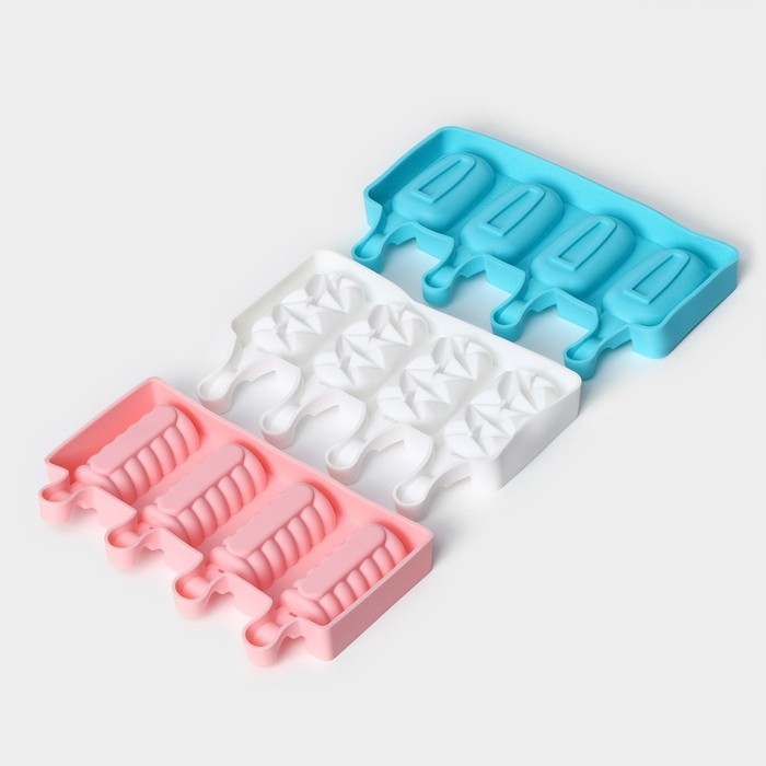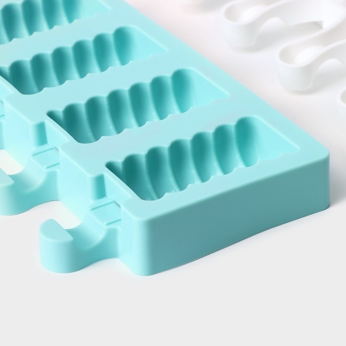 Форма для мороженого «Эскимо классика», силикон, 25,8×14,6×2,6 см, 4 ячейки, цвет МИКС