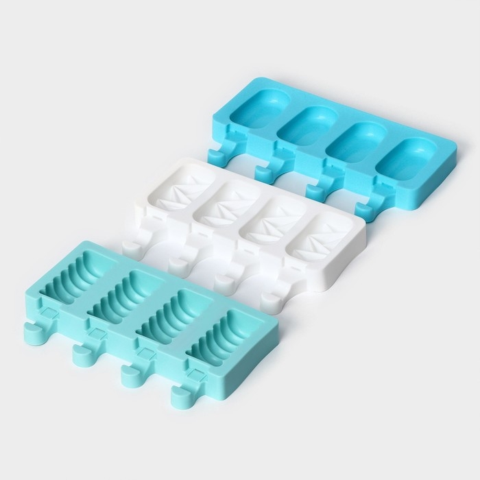 Форма для мороженого «Кристалл», силикон, 19×12,5×2,2 см, 4 ячейки, цвет белый