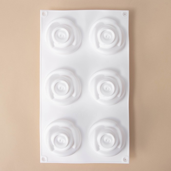 Форма для муссовых десертов и выпечки Доляна «Розы», 30×17,5×6 см, 6 ячеек (6,5×6,8 см), цвет белый