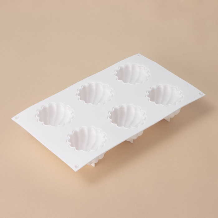 Форма для муссовых десертов и выпечки Доляна «Взбитые сливки», 29×17×5 см, 6 ячеек (d=6,5 см), цвет белый