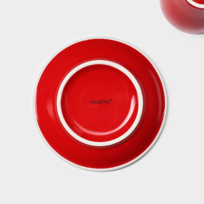 Кофейная пара фарфоровая Magistro Coffee time, 2 предмета: чашка 80 мл, блюдце d=12,5 см, цвет красный