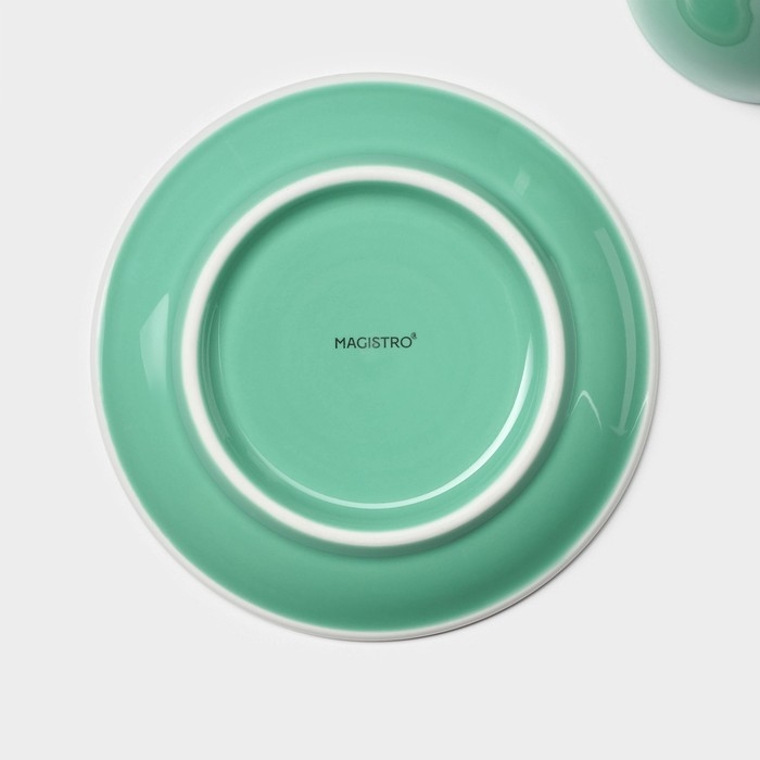 Кофейная пара фарфоровая Magistro Coffee time, 2 предмета: чашка 180 мл, блюдце d=14,5 см, цвет бирюзовый