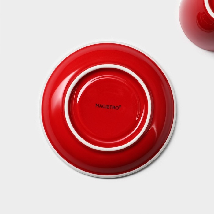Кофейная пара фарфоровая Magistro Coffee time, 2 предмета: чашка 80 мл, блюдце d=11,5 см, цвет красный