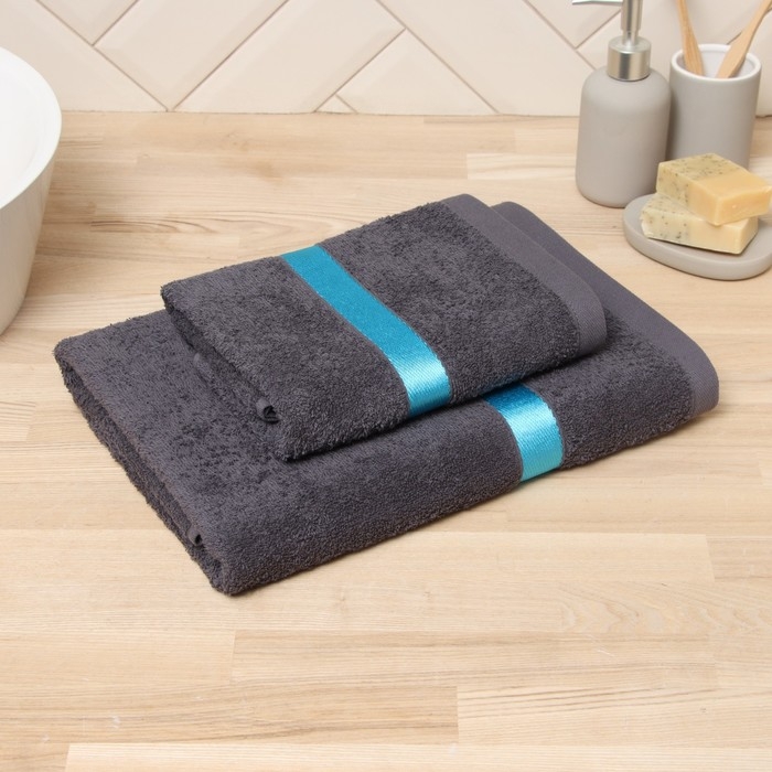 Полотенце махровое Love Life "Самум" 50*90 см, серый, синий, 100% хл, 450 гр/м2