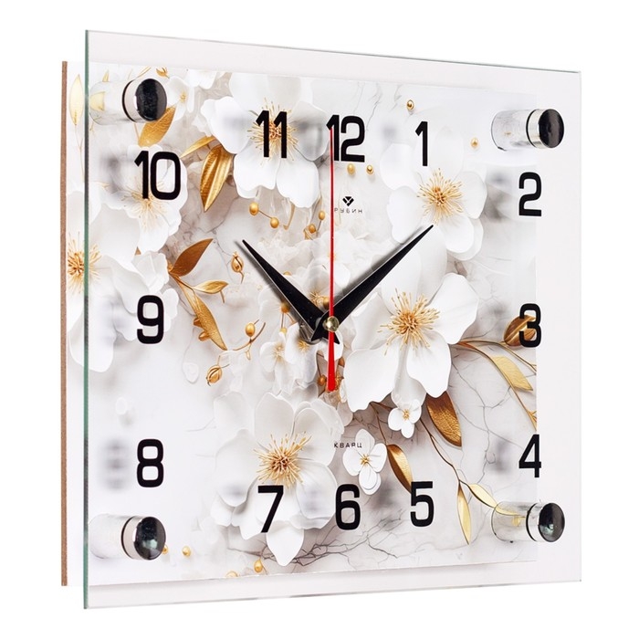 Часы настенные, интерьерные "Белые цветы" , бесшумные, 20 х 25 см, АА