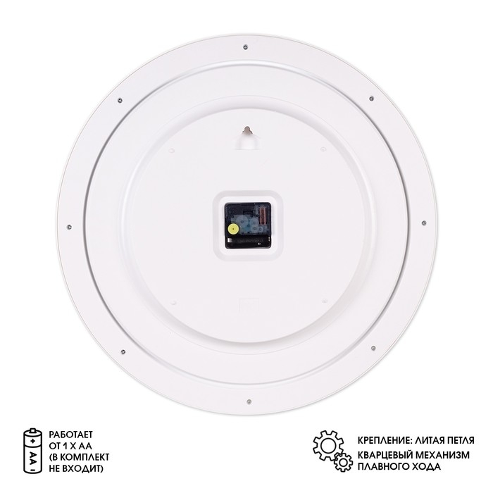Настенные часы - это не только функциональный предмет интерьера, но и стильный аксессуар, который может подчеркнуть дизайн помещения. Они помогают следить за временем, соблюдать распорядок дня и организовывать свою деятельность. Кроме того, настенные часы могут быть важным элементом декора, который придает комнате завершенный вид. Они могут стать ярким акцентом в интерьере или, наоборот, гармонично вписаться в общий стиль помещения. Данные часы - это воплощение стиля и качества, созданное специально для тех, кто ценит изысканность и элегантность. Обладают высокой прочностью, долговечностью и устойчивостью к внешним воздействиям. Изготовленные из прочного пластика, они станут настоящим украшением и подчеркнут индивидуальность вашего вкуса. Кварцевый механизм обеспечивает точность хода и гарантирует, что часы будут идти без сбоев на протяжении многих лет. Часы бесшумны, вы не услышите раздражающих звуков из-за отсутствия шумовых эффектов. Питание осуществляется от батарейки типа АА (в комплект не входит). Диаметр часов составляет 48 см, что позволяет разместить их в любом удобном месте.