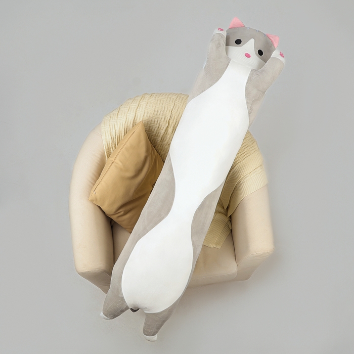 Мягкая игрушка-подушка «Котик», 130 см, цвет серый