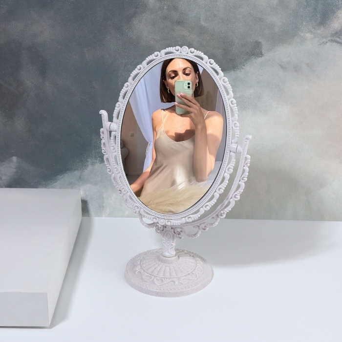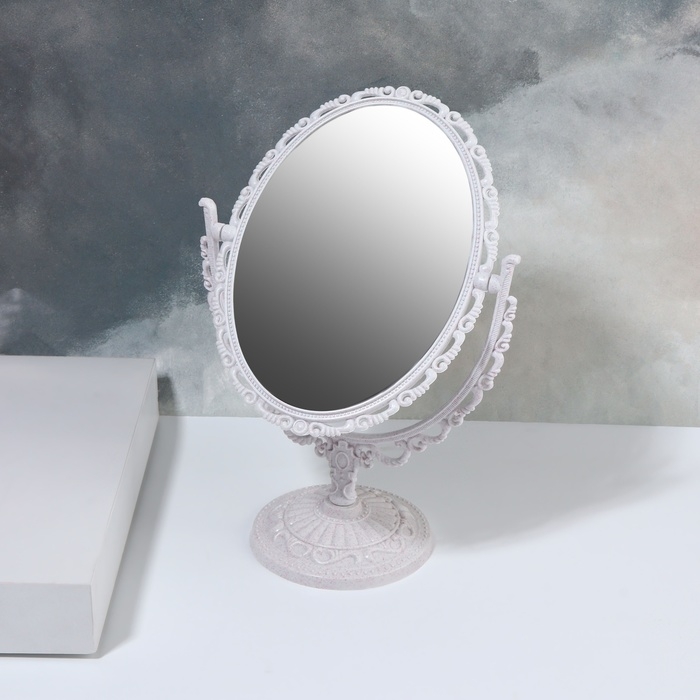 Зеркало настольное «Овал», двустороннее, с увеличением, зеркальная поверхность 11 × 15,5 см, цвет белый
