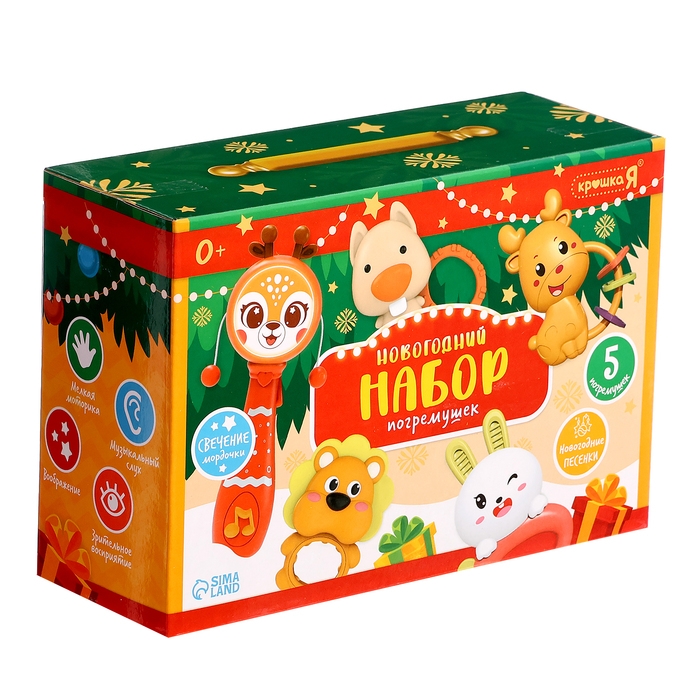 Новогодний набор погремушек, русская озвучка, световые эффекты, 5 погремушек в наборе