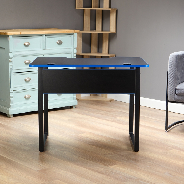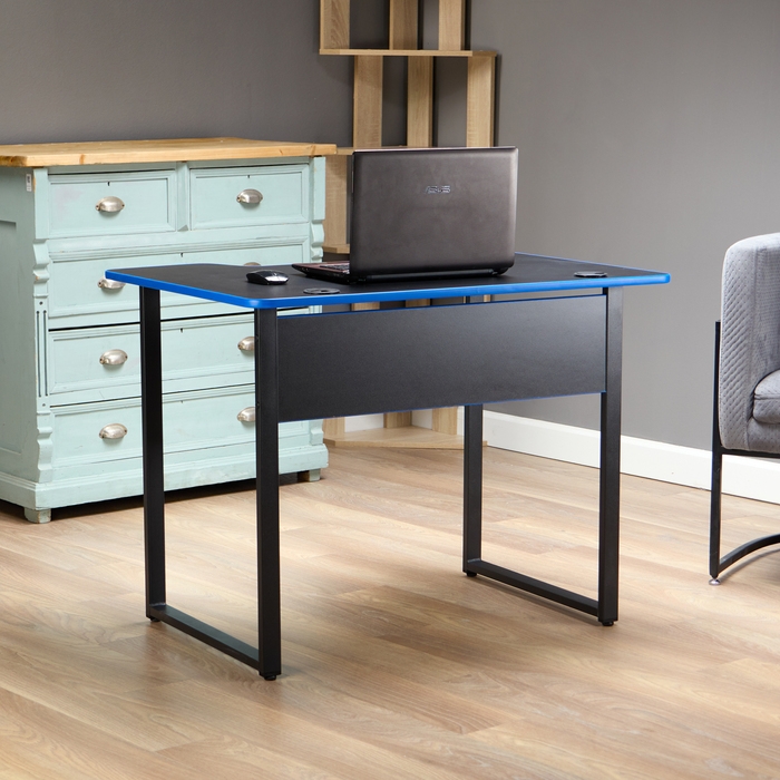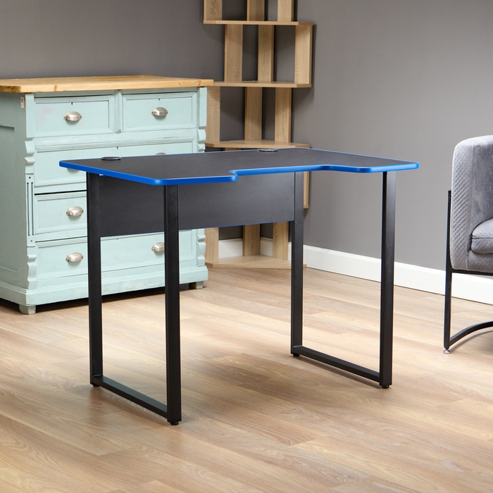 Стол игровой "ЛАЙТ" черный/синяя кромка