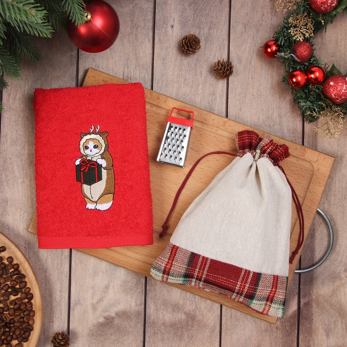 Набор в мешочке Этель "Sweet cat": полотенце 35х60см, тёрка 7,7х3,7х3см