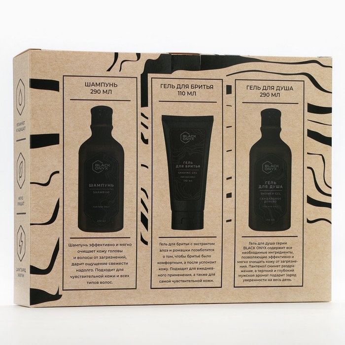 Подарочный набор косметики BLACK ONYX, гель для душа 290 мл, шампунь для волос 290 мл, гель для бритья 110 мл, HARD LINE