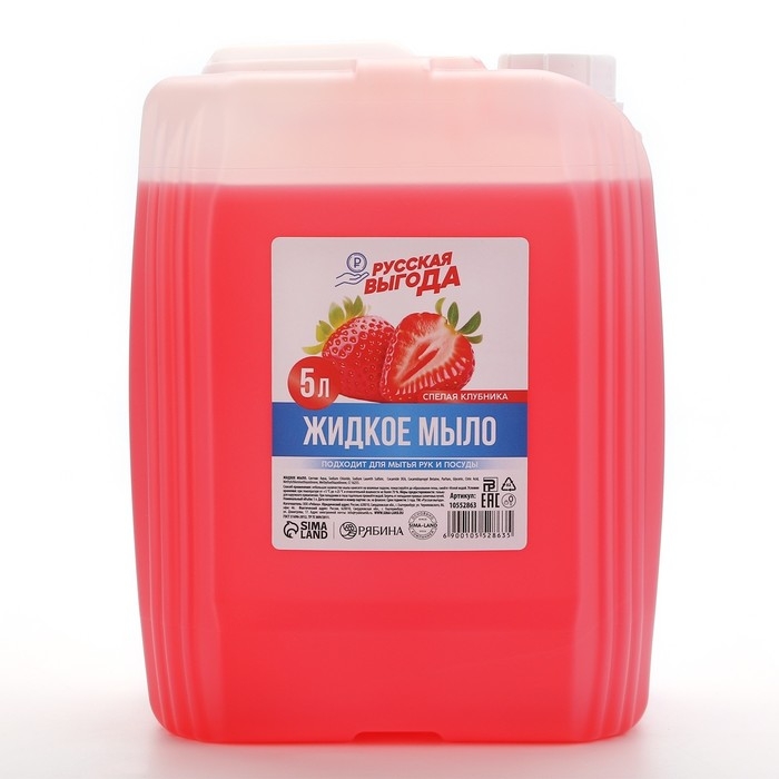 Мыло жидкое кухонное, 5 л (5000 мл), аромат клубники,РУССКАЯ ВЫГОДА