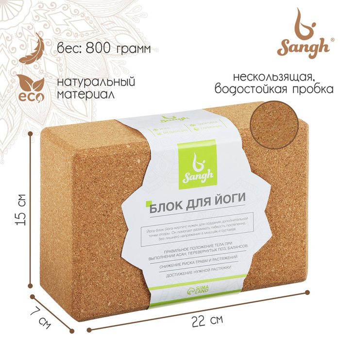 Блок для йоги Sangh, 15×22×7 см, пробка