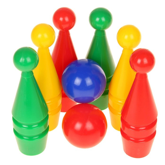 Боулинг цветной: 6 кеглей, 2 шара, в сетке