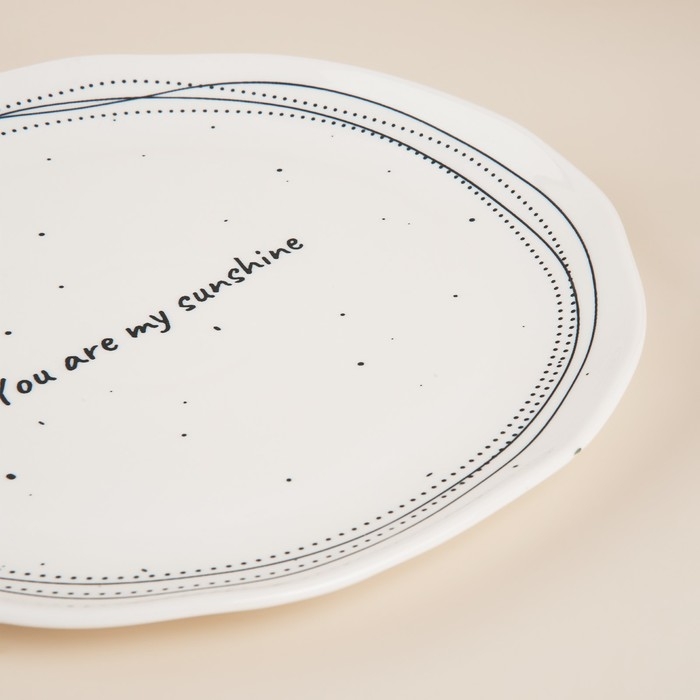 Эти тарелки выполнены из высококачественного фарфора, что обеспечивает их долговечность и устойчивость к царапинам. Гладкая текстура и белоснежный цвет посуды прекрасно сочетаются с любым интерьером, а уникальный рисунок в виде полосок и надписей добавляет оригинальности.