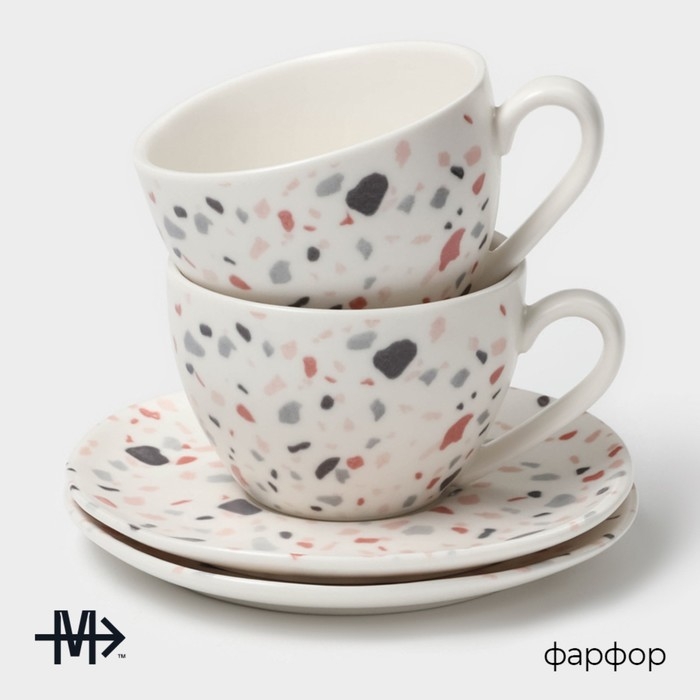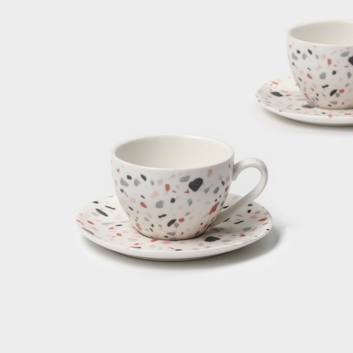 Набор чайный фарфоровый Magistro Terazzo, 4 предмета: 2 чашки 150 мл, 2 блюдца d=12,5 см