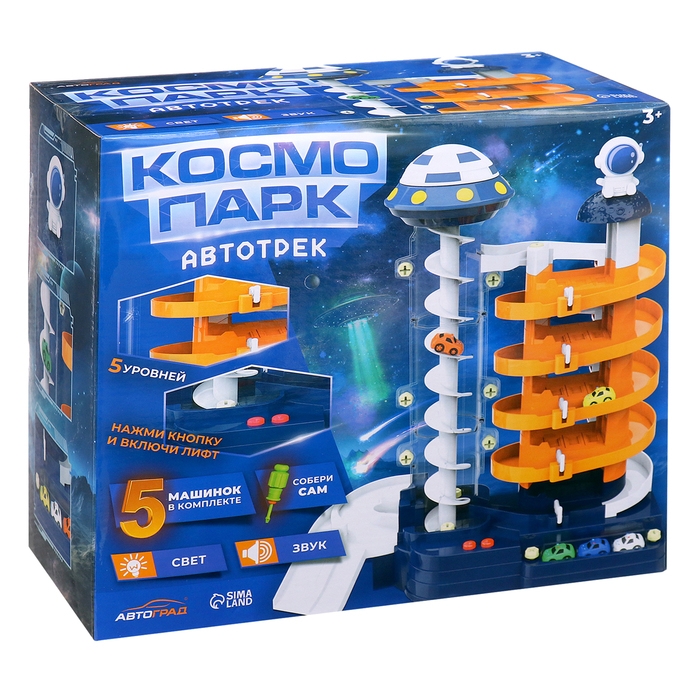 Автотрек «Космо-Парк», с лифтом, 5 машинок, работает от батареек