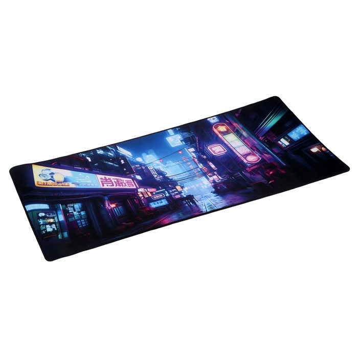 Коврик для мыши, 40х90х0.3 см, оверлок, город в стиле cyberpunk