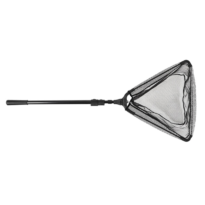 Подсачник складной телескопический П-28, усиленный, 205 см, треугольный обод 50 см, черный