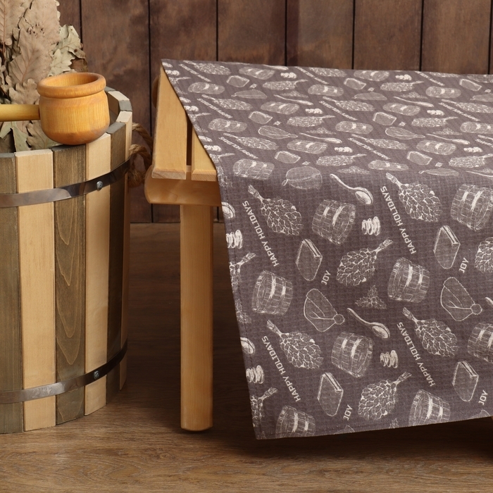 Простыня для бани "Новогодняя баня" 150х180 см, хлопок, ваф. полотно