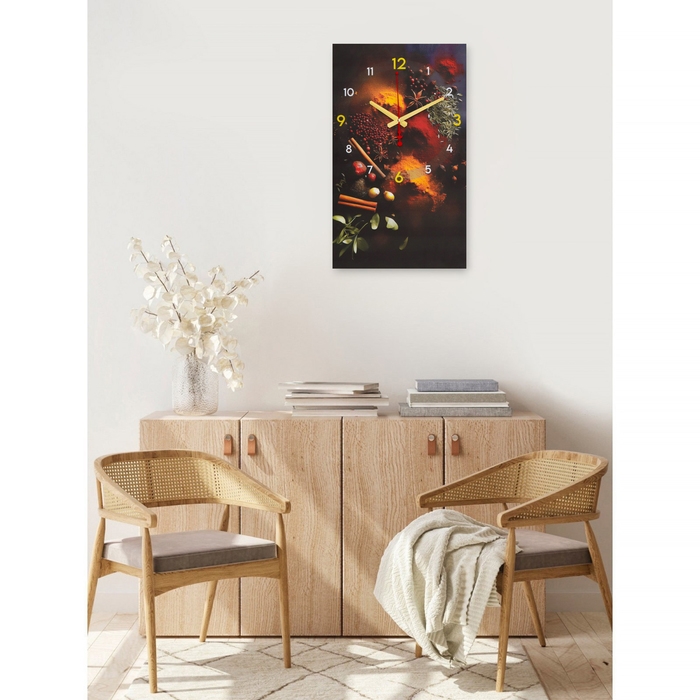 Часы-картина настенные интерьерные для кухни "Ягоды и специи", бесшумные, 35 х 60 см