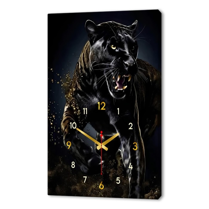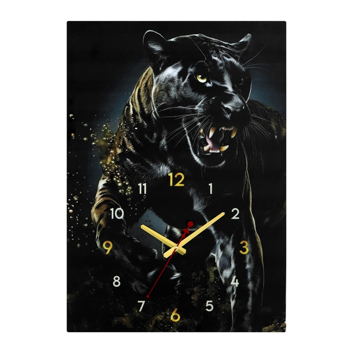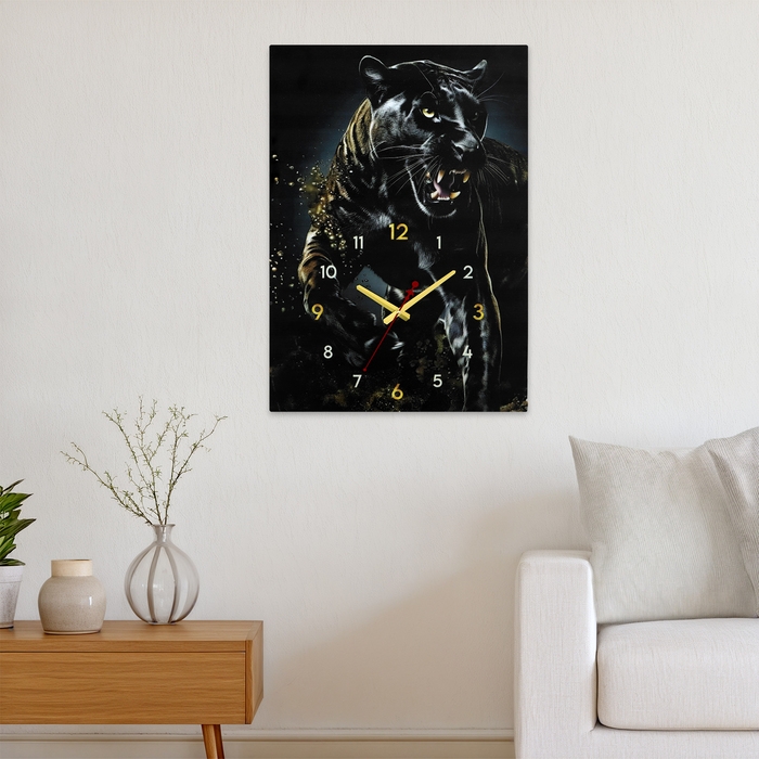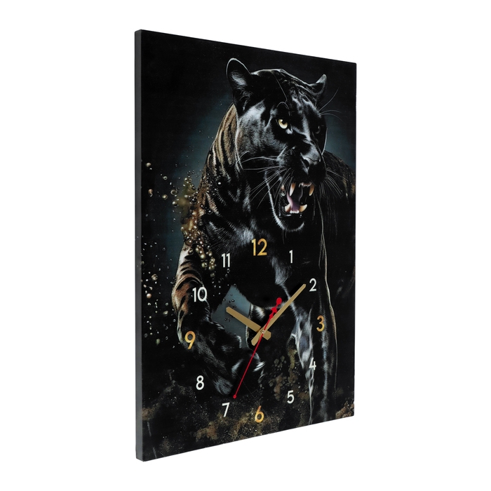 Часы-картина настенные интерьерные "Чёрная пантера в движении", бесшумные, 50 х 70 см