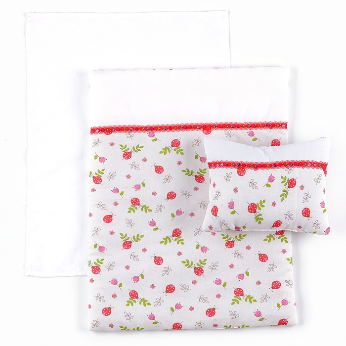 Кукольное постельное «Божьи коровки «: простынь, одеяло 46 × 36 см, подушка 23 × 17 см