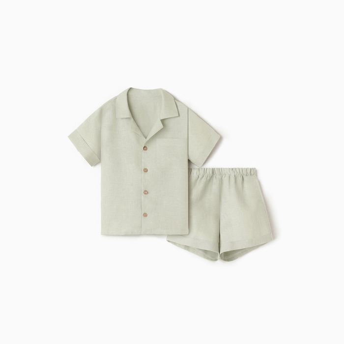 Костюм детский (рубашка и шорты) Крошка Я Linen, р.92-98, зеленый