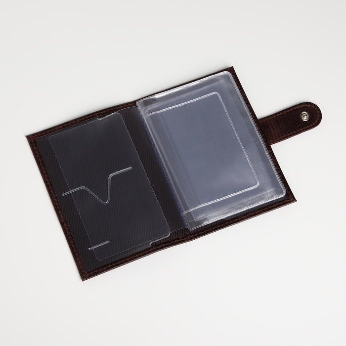 Обложка для автодокументов на кнопке, TEXTURA, цвет коричневый