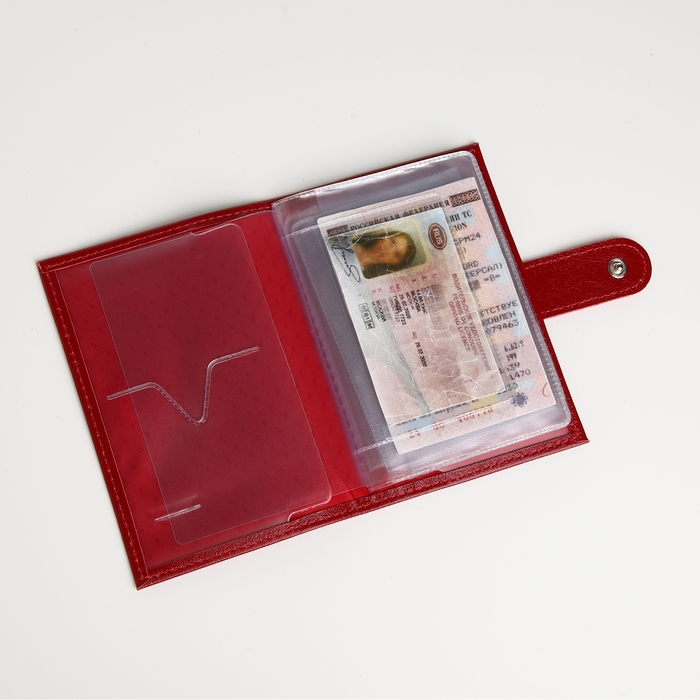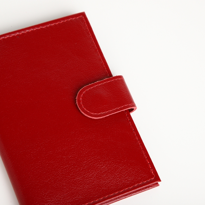 Кожаная поверхность не только подчеркивает элегантность аксессуара, но и обеспечивает долговечность использования. Благодаря кнопке на хлястике, ваши документы будут надежно защищены от случайных выпадений.