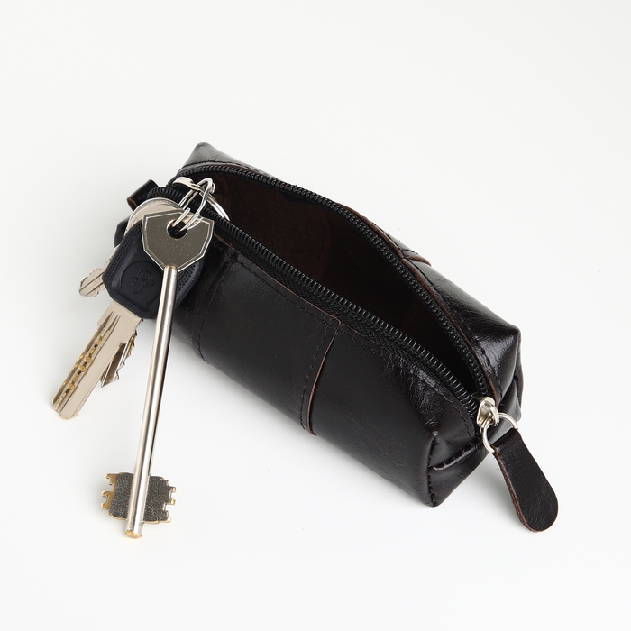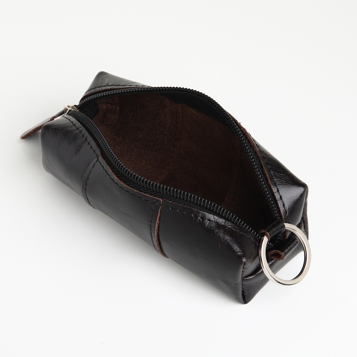 Ключница карманная на молнии, TEXTURA, длина 12,5 см, кольцо, цвет чёрный