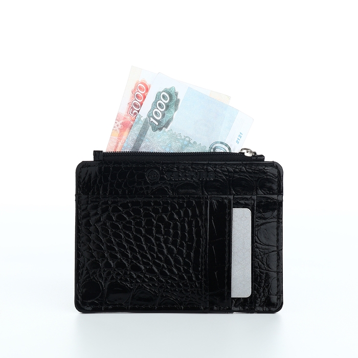 Визитница кожаная, TEXTURA, 8 карт, цвет чёрный