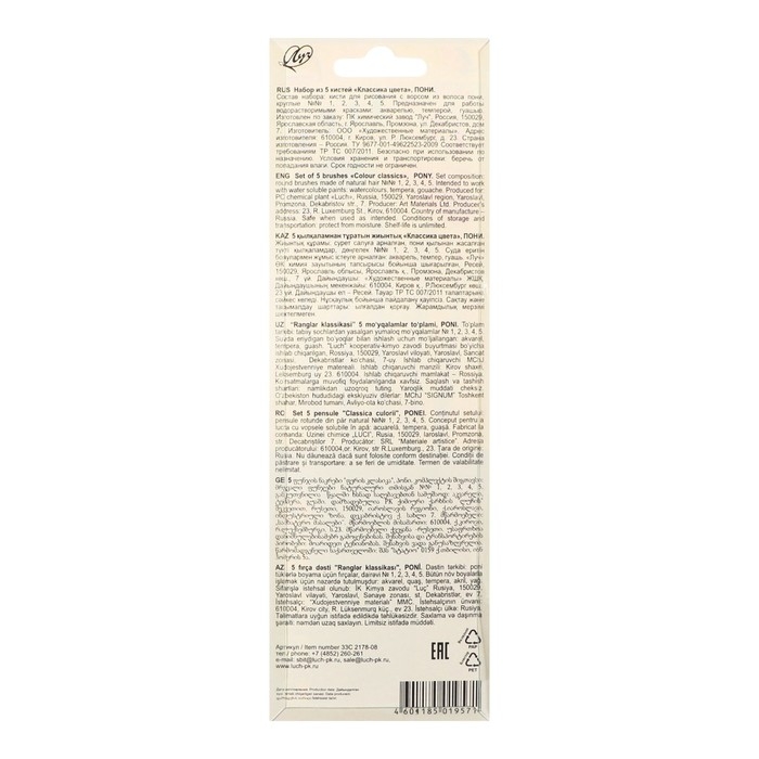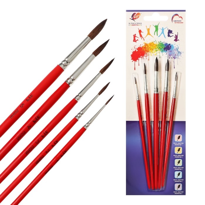 Набор кистей Пони 5шт Луч Классика цвета, (круглые № 1, 2, 3, 4, 5)