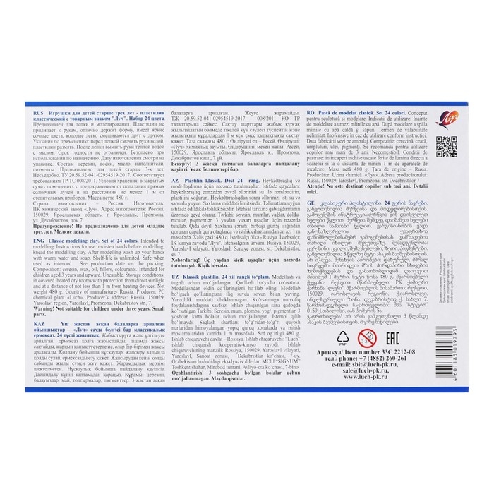 Пластилин 24цв 480г Луч "Аниме" (синий)