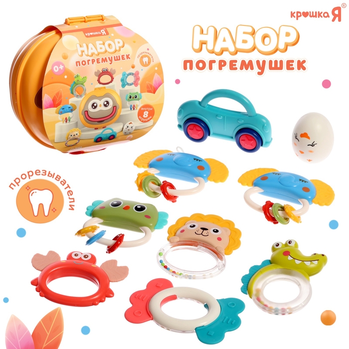 Набор погремушек «Совушка», прорезыватели для зубов, в контейнере, 8 шт.