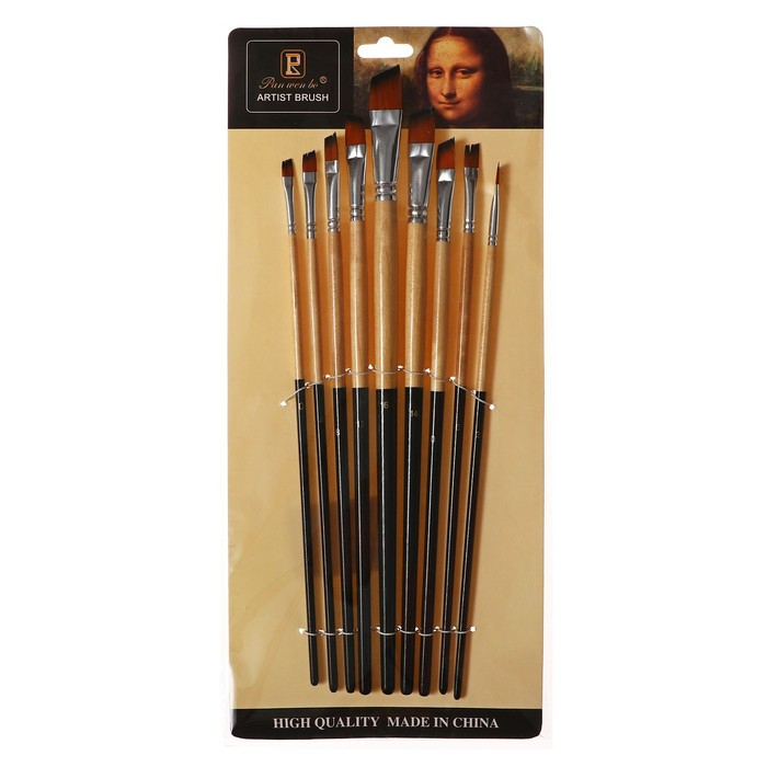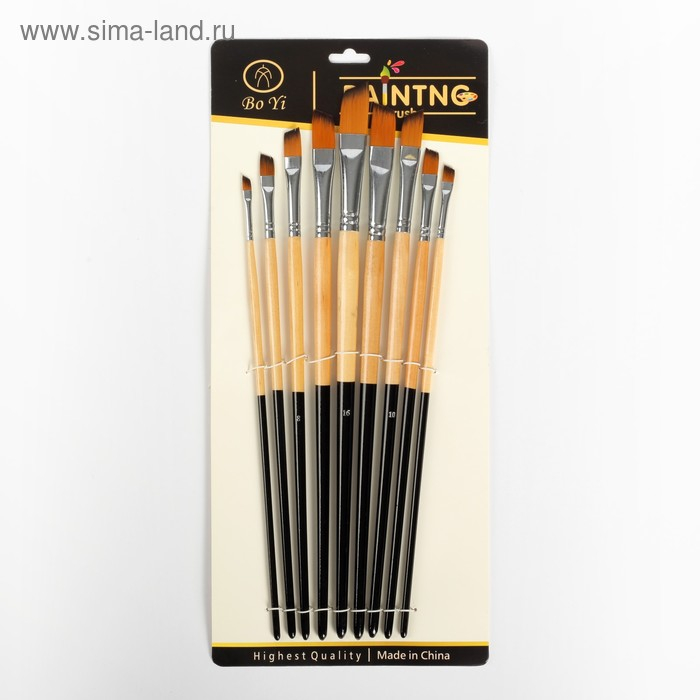Набор кистей нейлон, 9 штук, плоские, скошенные, с длинными ручками
