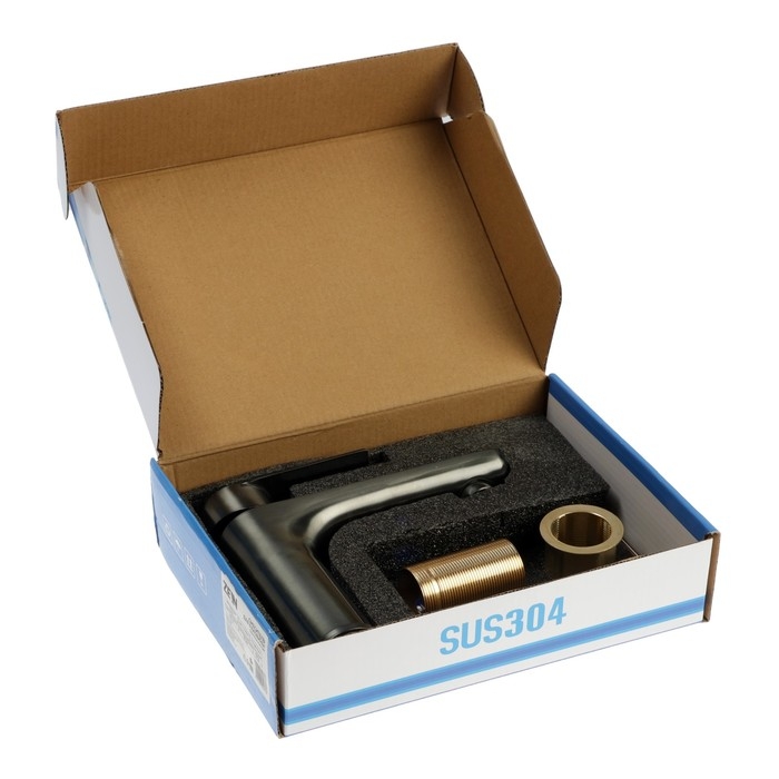 Смеситель для раковины ZEIN ZS 20102, картридж керамика 35 мм, нержавеющая сталь, сатин