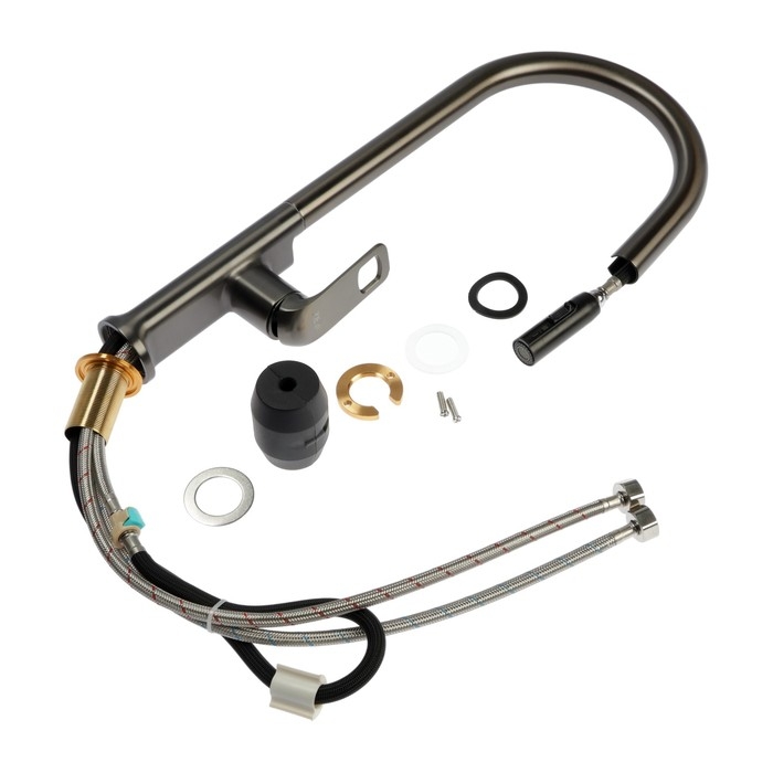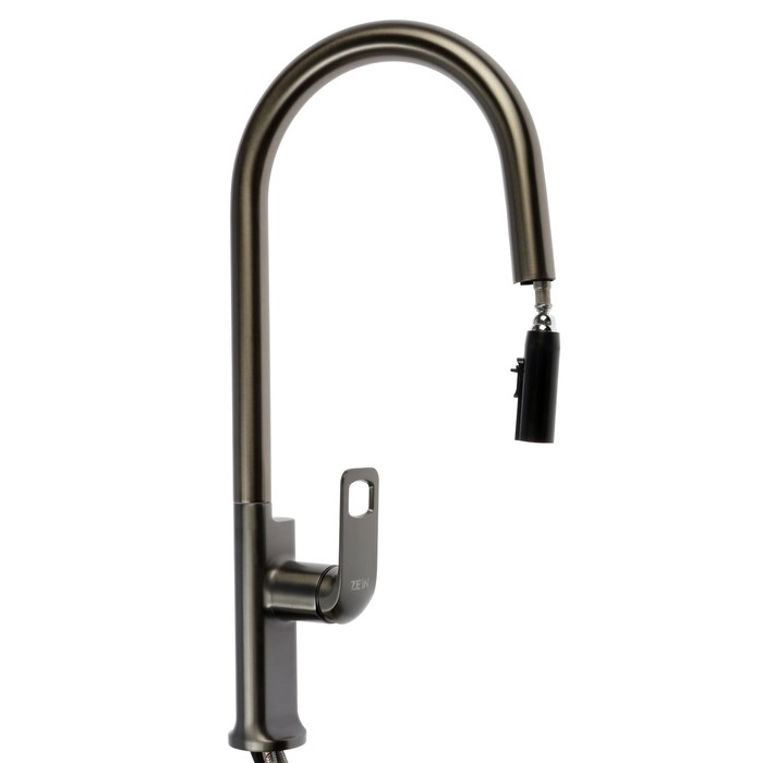 Смеситель для кухни ZEIN Z3785, однорычажный, вытяжной излив, аэратор 2 режима, графит