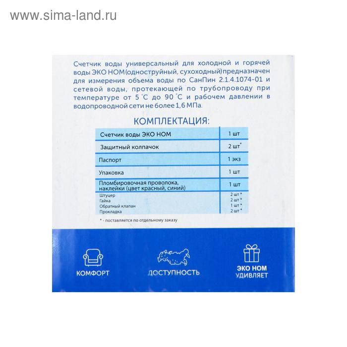 Счетчик воды «ЭКО НОМ» СВ-15-110, универсальный, 1/2", с обратным клапаном, с комплектом присоединения