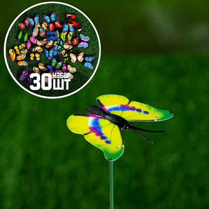 Штекер "Бабочка Шарлин" 3х4см/30см, набор 30шт, МИКС