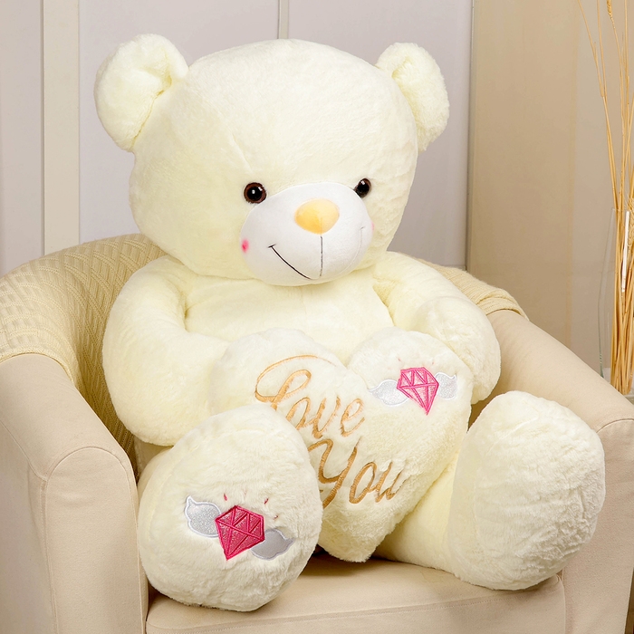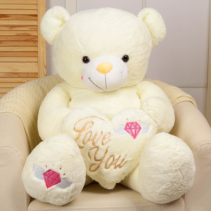Мягкая игрушка «Медведь» с сердцем, 115 см, цвет белый