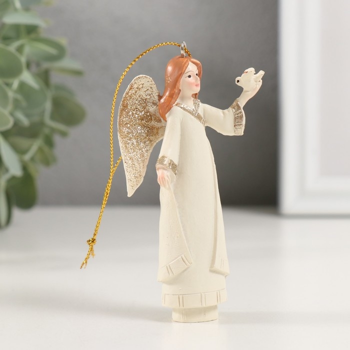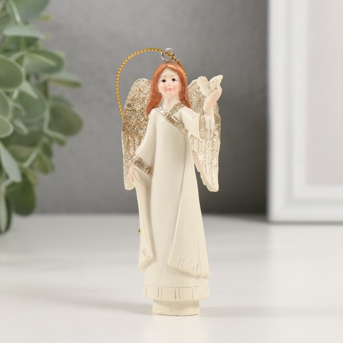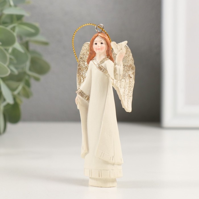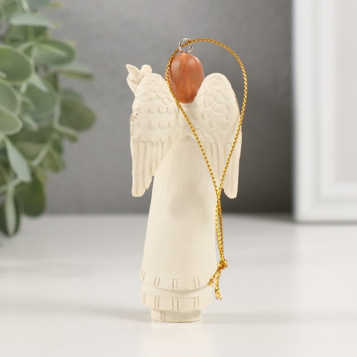 Сувенир полистоун подвеска "Ангел с птенчиком в руке" 4,5х4х10,5 см